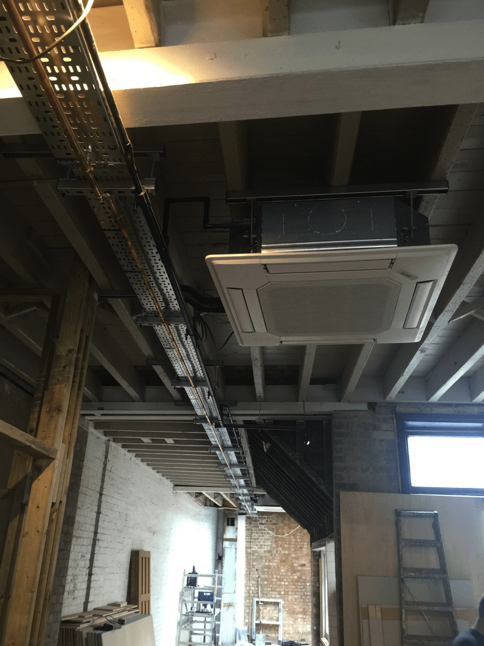 We worked with SOMA Build for this one, a fit out for one of Soho’s oldest private members bar, Union Club. We installed a Mitsubishi Electric heat pump system using exposed caeiling cassette fan coil units into the newly converted first floor Gallery Bar and installed a Nuaire toilet extract system to the second-floor conversion.